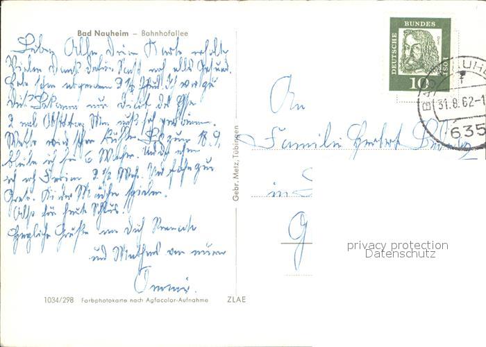72543480 alte Postkarte Bad Nauheim Bahnhofallee postalisch gelaufen Erhaltung siehe scans [WerneD78 kv016box] KatCode: 11110006440002