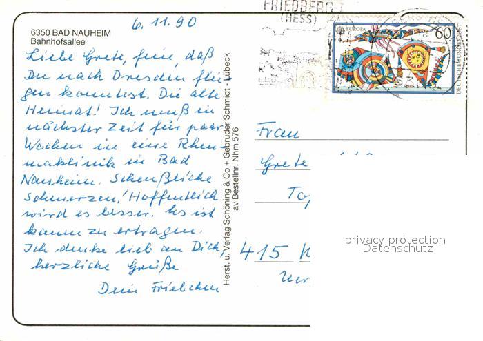 72832071 alte Postkarte Bad Nauheim Bahnhofsallee postalisch gelaufen Erhaltung siehe scans [LiesaD40] KatCode: 11110006440002