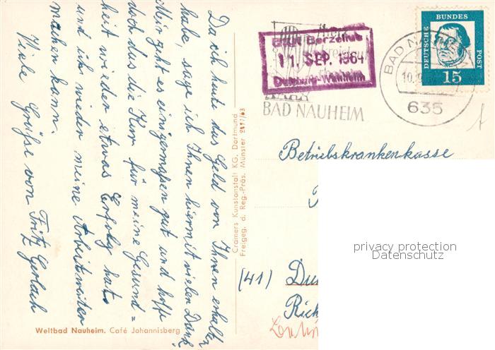 73866259 alte Postkarte Bad Nauheim Cafe Johannisberg Fliegeraufnahme postalisch gelaufen Erhaltung siehe scans [WerneD78] KatCode: 11110006440002