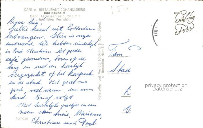 72074863 alte Postkarte Bad Nauheim Cafe Restaurant Johannisberg Pavillon postalisch gelaufen Erhaltung siehe scans KatCode: 11110006440002