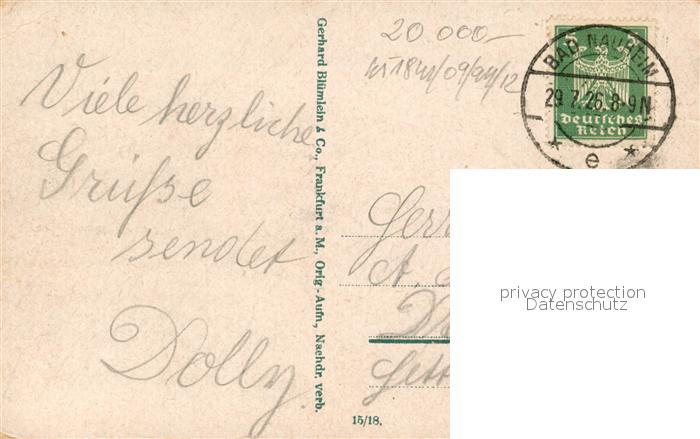 73550935 alte Postkarte Bad Nauheim Durchblick nach dem Teichhaus postalisch gelaufen Erhaltung siehe scans [WerneD78] KatCode: 11110006440002