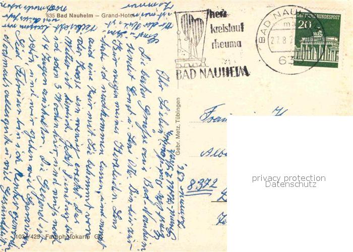 72668563 alte Postkarte Bad Nauheim Grand Hotel postalisch gelaufen Erhaltung siehe scans [AndreD76] KatCode: 11110006440002