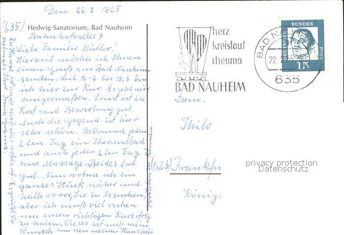 72098883 alte Postkarte Bad Nauheim Hedwig Sanatorium postalisch gelaufen Erhaltung siehe scans KatCode: 11110006440002