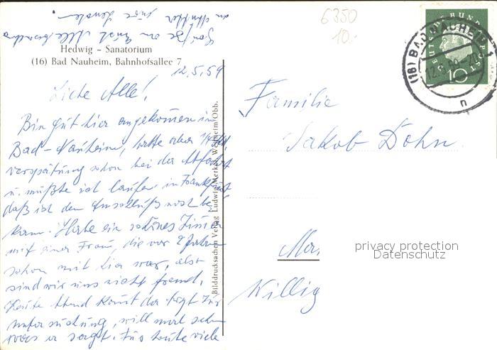 72098879 alte Postkarte Bad Nauheim Hedwig Sanatorium postalisch gelaufen Erhaltung siehe scans KatCode: 11110006440002