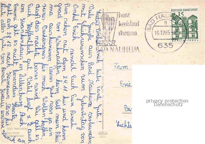 74156668 alte Postkarte BAD NAUHEIM Hessen Kurviertel Parkpromenade Hotel-Rhein-Ruhr VW-Bus Kurhotel Jugendstil Promenade Strassenszene postalisch gelaufen Erhaltung siehe scans [Karloger] KatCode: 11110006440002