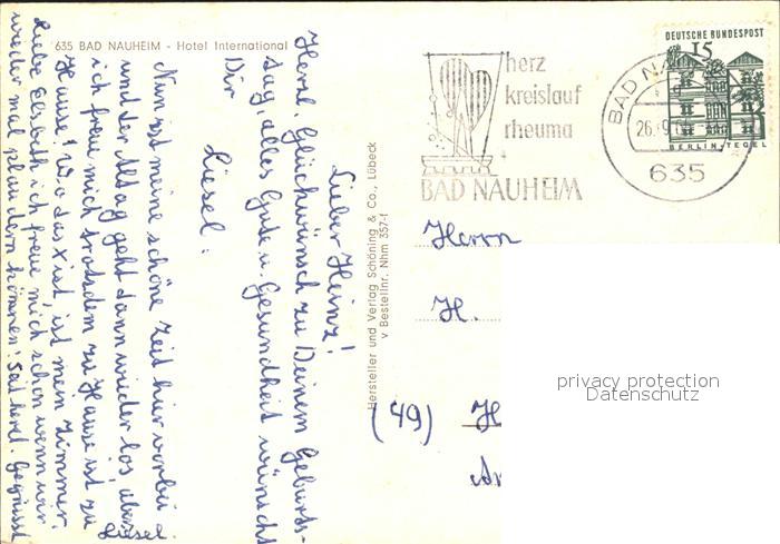 71946811 alte Postkarte Bad Nauheim Hotel International Springbrunnen postalisch gelaufen Erhaltung siehe scans KatCode: 11110006440002
