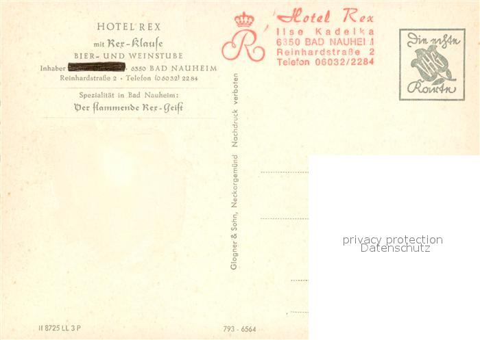73642153 Bad Nauheim Hotel Rex mit Rex-Klause Gastraeume postalisch nicht gelaufen Erhaltung siehe scans [WerneD78] KatCode: 11110006440002