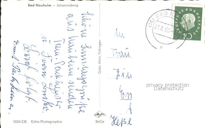 72198775 alte Postkarte Bad Nauheim Johanisberg postalisch gelaufen Erhaltung siehe scans KatCode: 11110006440002