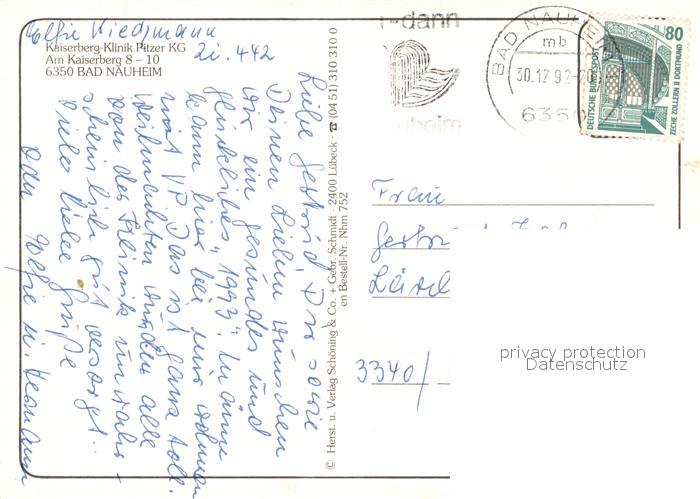 73105305 alte Postkarte Bad Nauheim Kaiserberg Klinik Pitzer Foyer Hallenbad postalisch gelaufen Erhaltung siehe scans [WerneD78] KatCode: 11110006440002