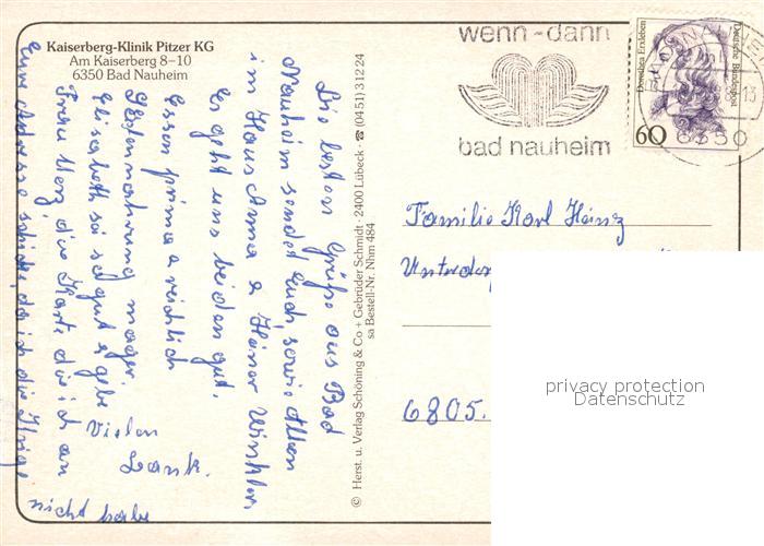 73070489 alte Postkarte Bad Nauheim Kaiserberg Klinik Pitzer KG Hallenbad Restaurant postalisch gelaufen Erhaltung siehe scans [FriedD77] KatCode: 11110006440002