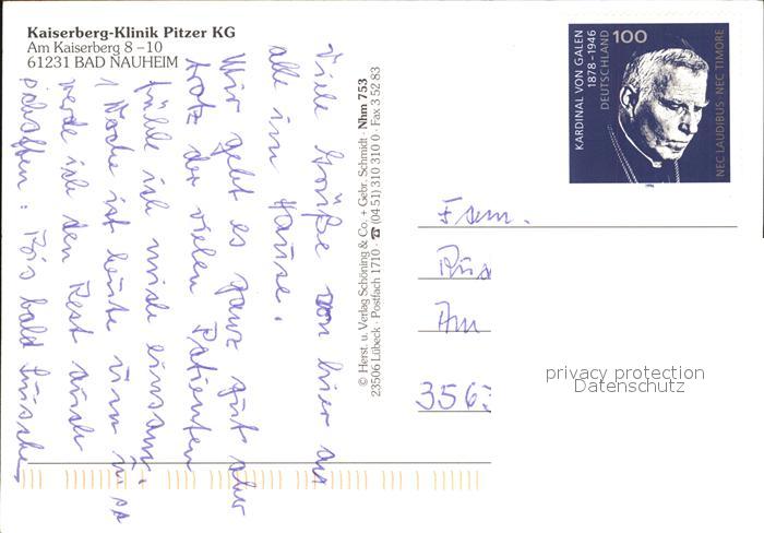 72506863 alte Postkarte Bad Nauheim Kaiserberg Klinik Pitzer postalisch gelaufen Erhaltung siehe scans KatCode: 11110006440002