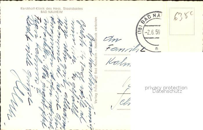 41585734 alte Postkarte Bad Nauheim Kerckhoff Klinik postalisch gelaufen Erhaltung siehe scans KatCode: 11110006440002