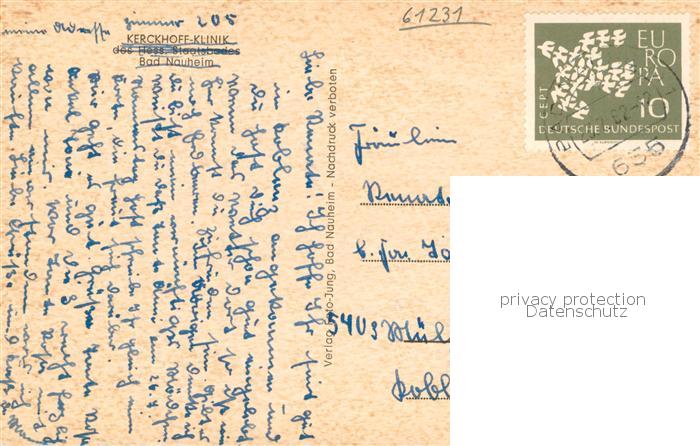 73762281 alte Postkarte Bad Nauheim Kerckhoff Klinik postalisch gelaufen Erhaltung siehe scans [WerneD78] KatCode: 11110006440002