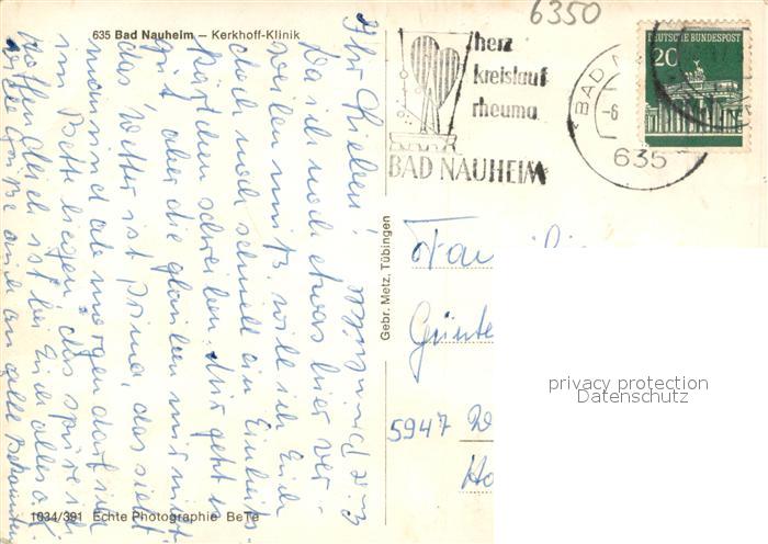 73706018 alte Postkarte Bad Nauheim Kerkhoff-Klinik Aussenansicht postalisch gelaufen Erhaltung siehe scans [LiesaD40] KatCode: 11110006440002