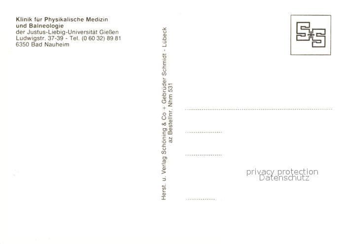 73022646 Bad Nauheim Klinik fuer Phys Medizin und Balneologie postalisch nicht gelaufen Erhaltung siehe scans [WerneD78] KatCode: 11110006440002
