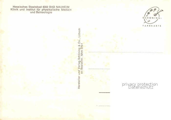 72787944 Bad Nauheim Klinik Institut fuer physikalische Medizin und Balneologie postalisch nicht gelaufen Erhaltung siehe scans [FriedD77] KatCode: 11110006440002