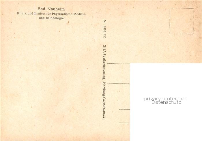 73156895 Bad Nauheim Klinik Institut fuer Physikalische Medizin und Balneologie postalisch nicht gelaufen Erhaltung siehe scans [LiesaD40] KatCode: 11110006440002