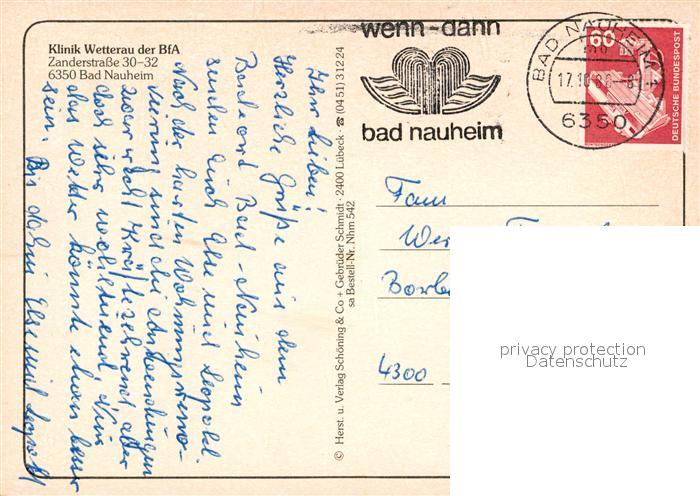 73055790 alte Postkarte Bad Nauheim Klinik Wetterau postalisch gelaufen Erhaltung siehe scans [NatalD47] KatCode: 11110006440002