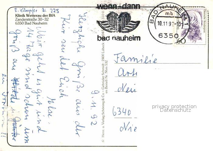 72878484 alte Postkarte Bad Nauheim Klinik Wetterau postalisch gelaufen Erhaltung siehe scans [AndreD76] KatCode: 11110006440002