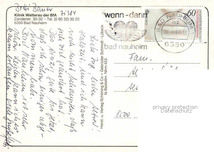 72716672 alte Postkarte Bad Nauheim Klinik Wetterau der BfA postalisch gelaufen Erhaltung siehe scans [LiesaD40] KatCode: 11110006440002