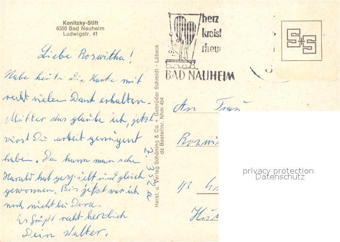 73092881 alte Postkarte Bad Nauheim Konitzky-Stift postalisch gelaufen Erhaltung siehe scans [NatalD47] KatCode: 11110006440002