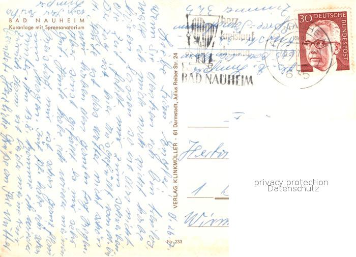 72971340 alte Postkarte Bad Nauheim Kuranlage mit Spreesanatorium Fontaene postalisch gelaufen Erhaltung siehe scans [FriedD77] KatCode: 11110006440002