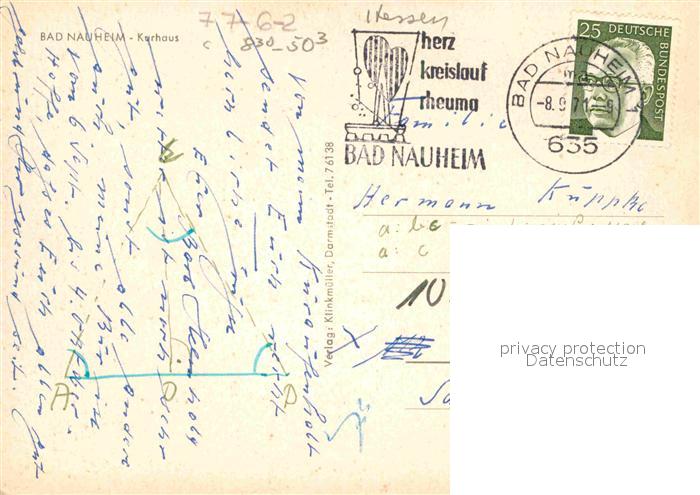 72889857 alte Postkarte Bad Nauheim Kurhaus postalisch gelaufen Erhaltung siehe scans [FriedD77] KatCode: 11110006440002
