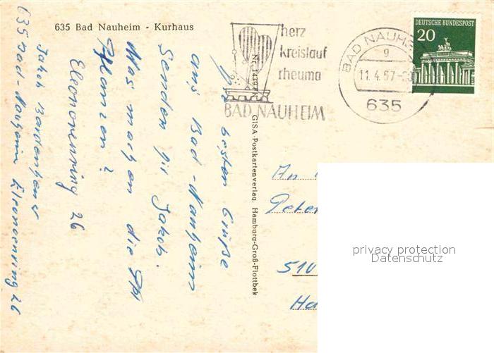 72828288 alte Postkarte Bad Nauheim Kurhaus postalisch gelaufen Erhaltung siehe scans [FriedD77] KatCode: 11110006440002