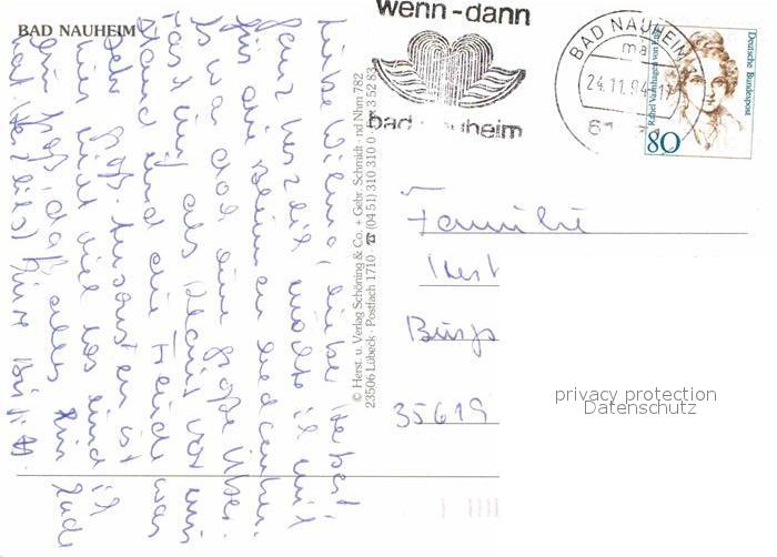 72901896 alte Postkarte Bad Nauheim Kurhaus Bahnhofsallee Klinik Wetterau Schmuckhof Sprudelhof postalisch gelaufen Erhaltung siehe scans [AndreD76] KatCode: 11110006440002