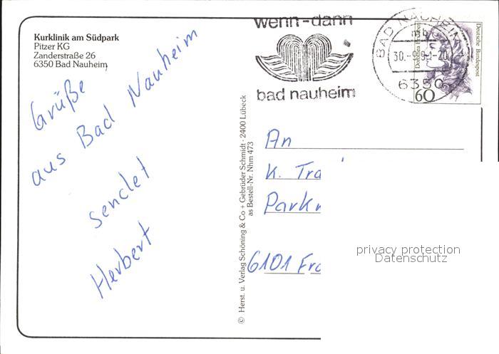 alte Postkarte Bad Nauheim Kurklinik Suedpark postalisch gelaufen Erhaltung siehe scans