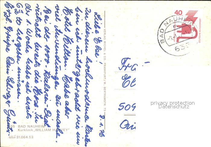 72449620 alte Postkarte Bad Nauheim Kurklinik William Harvay postalisch gelaufen Erhaltung siehe scans KatCode: 11110006440002