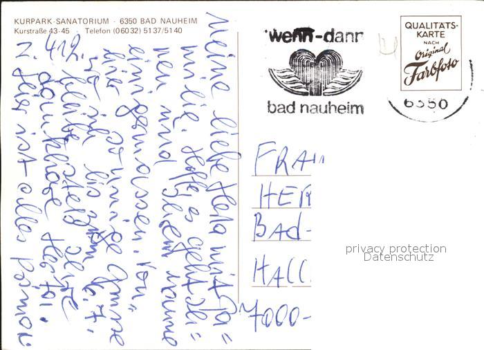 72425011 alte Postkarte Bad Nauheim Kurpark Sanatorium postalisch gelaufen Erhaltung siehe scans KatCode: 11110006440002