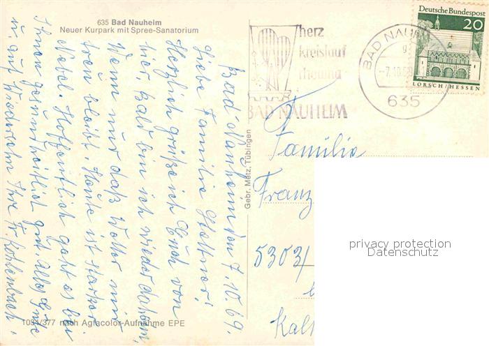 72888830 alte Postkarte Bad Nauheim Kurpark Spree Sanatorium postalisch gelaufen Erhaltung siehe scans [AndreD76] KatCode: 11110006440002