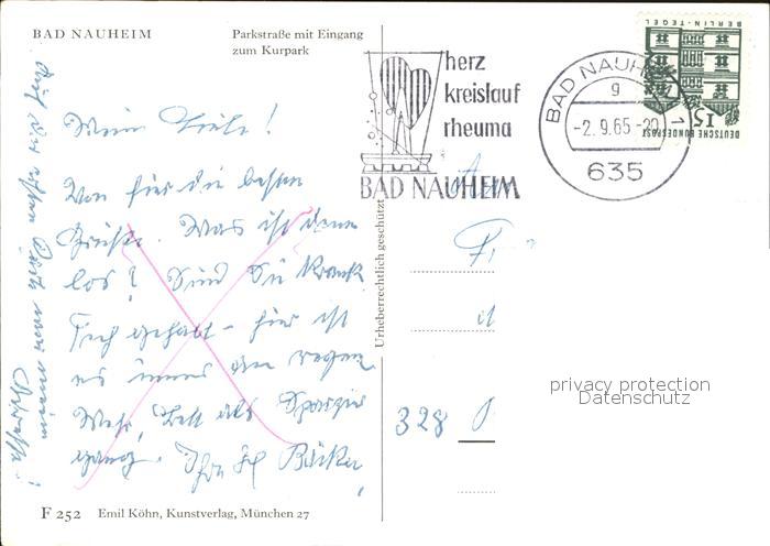 72522600 alte Postkarte Bad Nauheim Parkstrasse mit Eingang zum Kurpark postalisch gelaufen Erhaltung siehe scans KatCode: 11110006440002