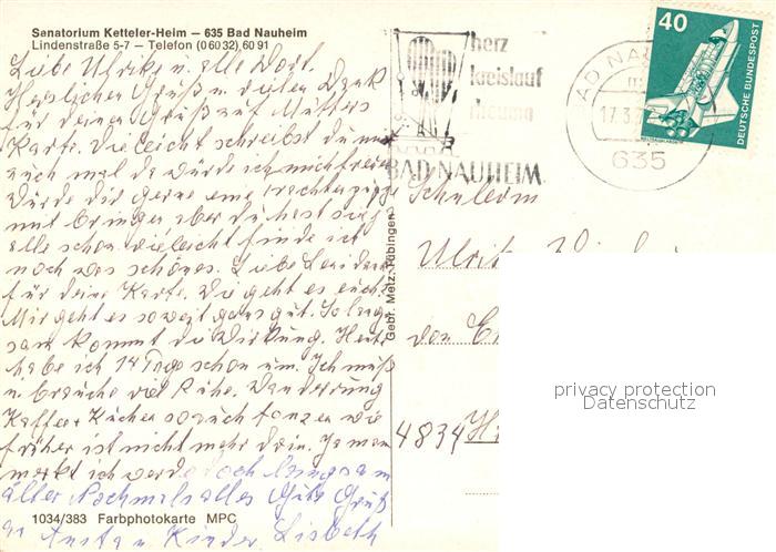 73175635 alte Postkarte Bad Nauheim Sanatorium Ketteler-Heim postalisch gelaufen Erhaltung siehe scans [LiesaD40] KatCode: 11110006440002