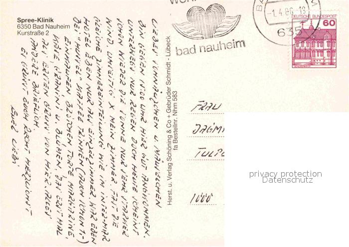 72889828 alte Postkarte Bad Nauheim Spree Kurklinik Restaurant Hallenbad postalisch gelaufen Erhaltung siehe scans [FriedD77] KatCode: 11110006440002