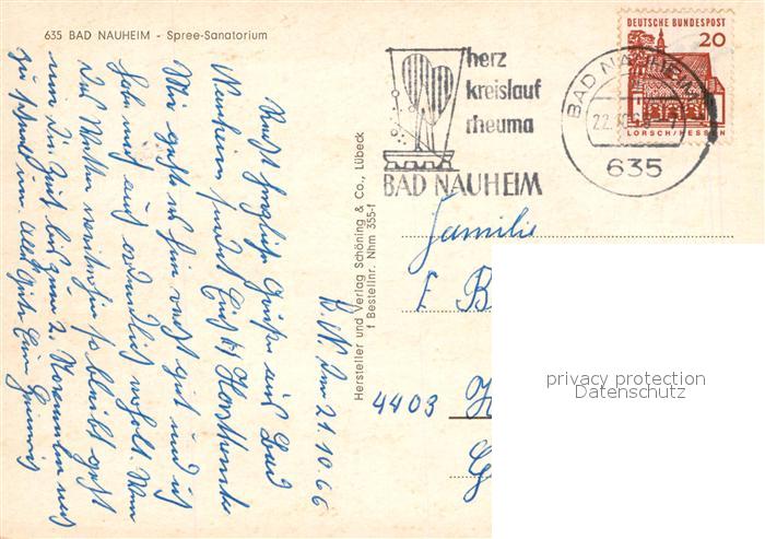 72959911 alte Postkarte Bad Nauheim Spree Sanatorium postalisch gelaufen Erhaltung siehe scans [WerneD78] KatCode: 11110006440002