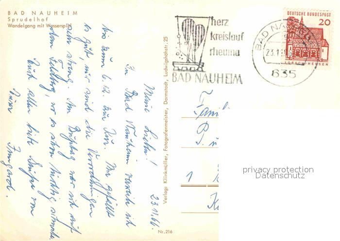 72919333 alte Postkarte Bad Nauheim Sprudelhof Wandelgang Wasserspiel postalisch gelaufen Erhaltung siehe scans [NatalD47] KatCode: 11110006440002