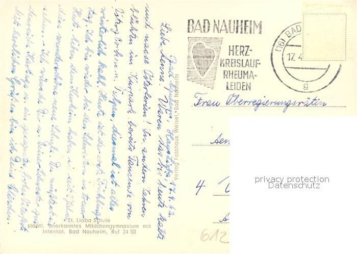 43039190 alte Postkarte Bad Nauheim St Lioba Schule Maedchengymnasium Internat postalisch gelaufen Erhaltung siehe scans [FriedD77] KatCode: 11110006440002