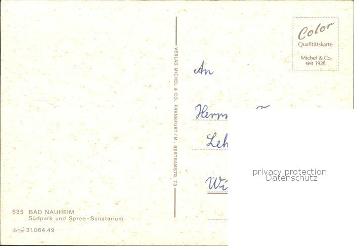 72417521 Bad Nauheim Suedpark und Spreesanatorium postalisch nicht gelaufen Erhaltung siehe scans KatCode: 11110006440002