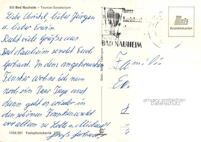 72904238 alte Postkarte Bad Nauheim Taunus-Sanatorium postalisch gelaufen Erhaltung siehe scans [NatalD47] KatCode: 11110006440002