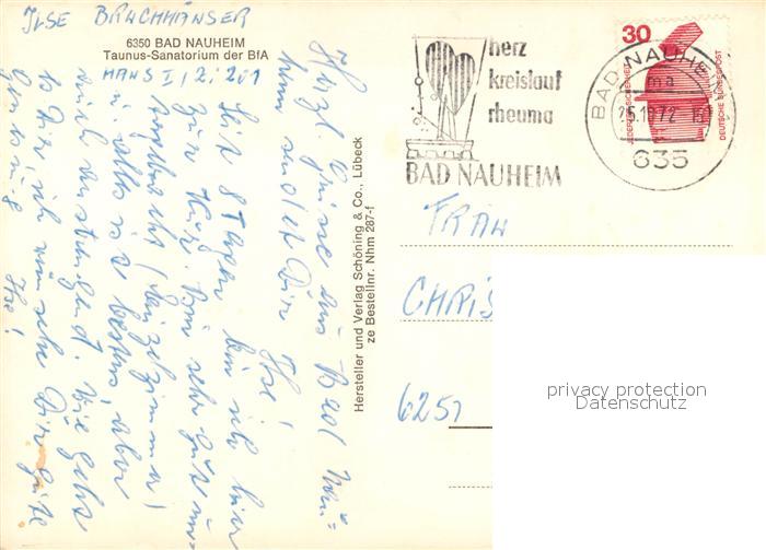 73197105 alte Postkarte Bad Nauheim Taunus Sanatorium BfA postalisch gelaufen Erhaltung siehe scans [KathaD81] KatCode: 11110006440002