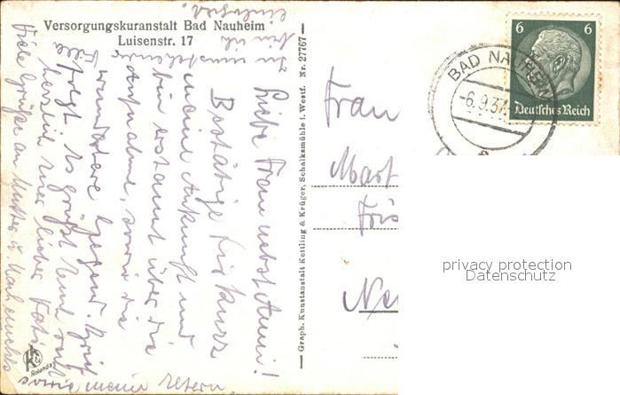 32099429 alte Postkarte Bad Nauheim Versorgungskuranstalt postalisch gelaufen Erhaltung siehe scans KatCode: 11110006440002
