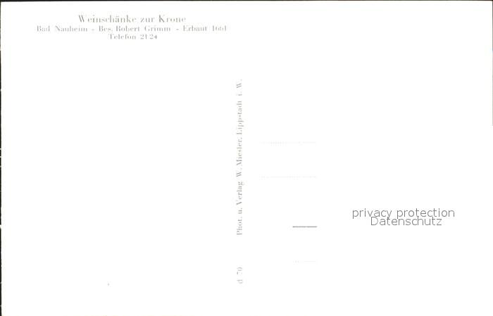 31728693 Bad Nauheim Weinschaenke zur Krone postalisch nicht gelaufen Erhaltung siehe scans KatCode: 11110006440002