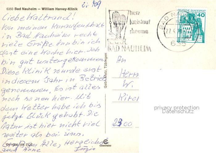 72960155 alte Postkarte Bad Nauheim William-Harvey-Klinik postalisch gelaufen Erhaltung siehe scans [PaolaD17] KatCode: 11110006440002