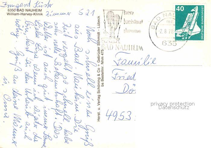 72797729 alte Postkarte Bad Nauheim William Harvey Klinik postalisch gelaufen Erhaltung siehe scans [FriedD77] KatCode: 11110006440002