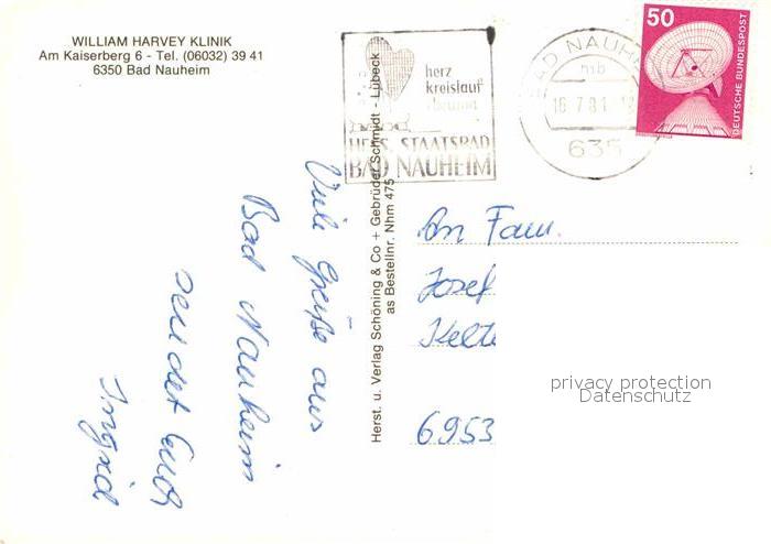 72683635 alte Postkarte Bad Nauheim William Harvey Klinik postalisch gelaufen Erhaltung siehe scans [LiesaD40] KatCode: 11110006440002