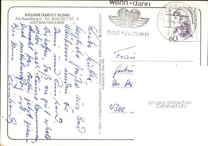 72528172 alte Postkarte Bad Nauheim William Harvey Klinik Rezeption Gastraum Hallenbad postalisch gelaufen Erhaltung siehe scans KatCode: 11110006440002