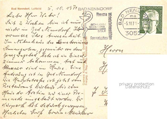 72812648 alte Postkarte Bad Nenndorf Fliegeraufnahme postalisch gelaufen Erhaltung siehe scans [WerneD78] KatCode: 11110003257006