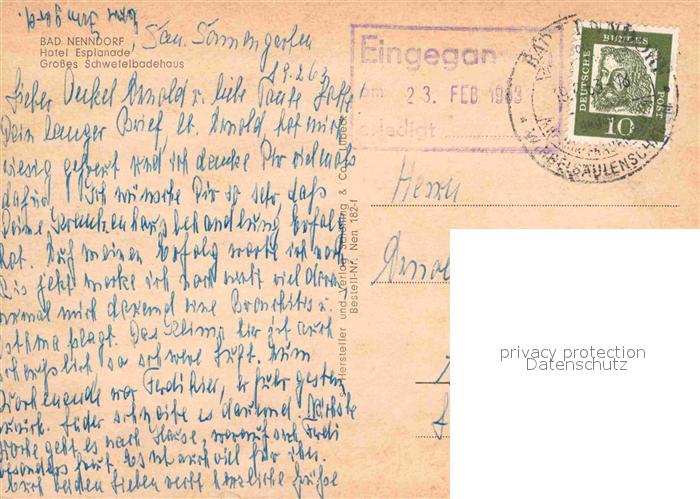 72859203 Bad Nenndorf Hotel Espanade postalisch nicht gelaufen Erhaltung siehe scans [AndreD76] Andr Katcode 11110003257006